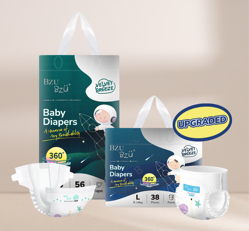 The Upgraded version of BZU BZU Baby Diapers have improved on softness, hypoallergenic properties and etc.